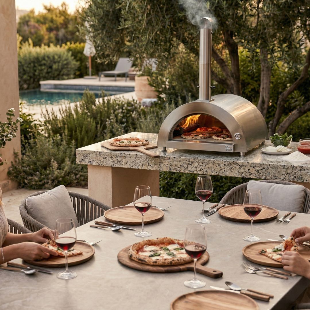 Imagine the rich aroma of a perfectly baked pizza, fresh out of a CASA NOSTRA wood-fired oven. The crispy, golden crust is infused with subtle smokiness, giving it an irresistible depth of flavor. As you take a bite, you taste the melded goodness of melted cheese, tangy tomato sauce, and a medley of toppings, all enhanced by that unique wood-smoked essence.